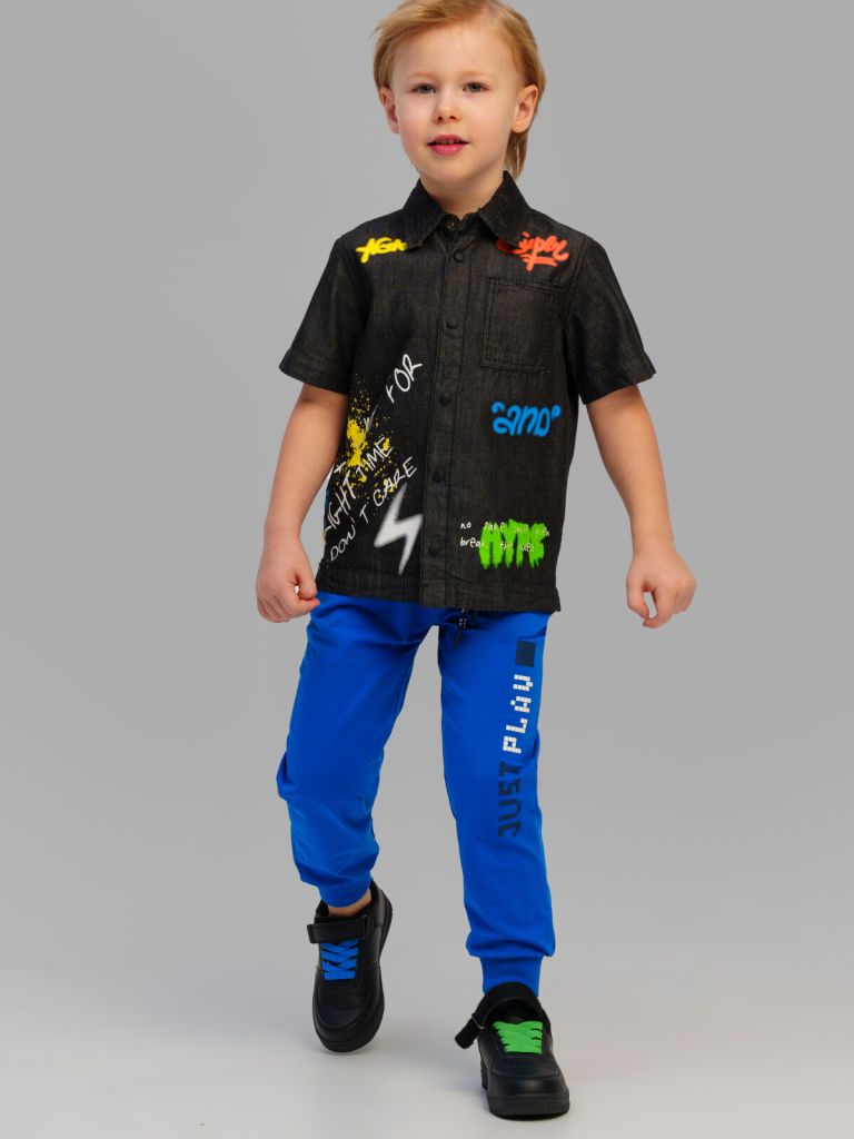 Джинсовая детская рубашка для мальчика. Оверсайз силуэт. Застежка на кнопки. Функциональный нагрудный карман. Модель выполнена из качественного и плотного текстиля.