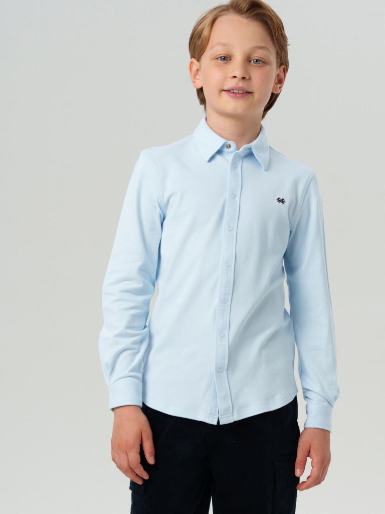 Эта рубашка для мальчика с длинным рукавом создана специально для школы: строгая и сдержанная, но в то же время — мягкая, гибкая и невероятно комфортная. Ткань — хлопковый трикотаж пике с эластаном — не раздражает кожу, хорошо пропускает воздух и сохраняет аккуратный внешний вид даже после интенсивного дня в классе или на переменах.