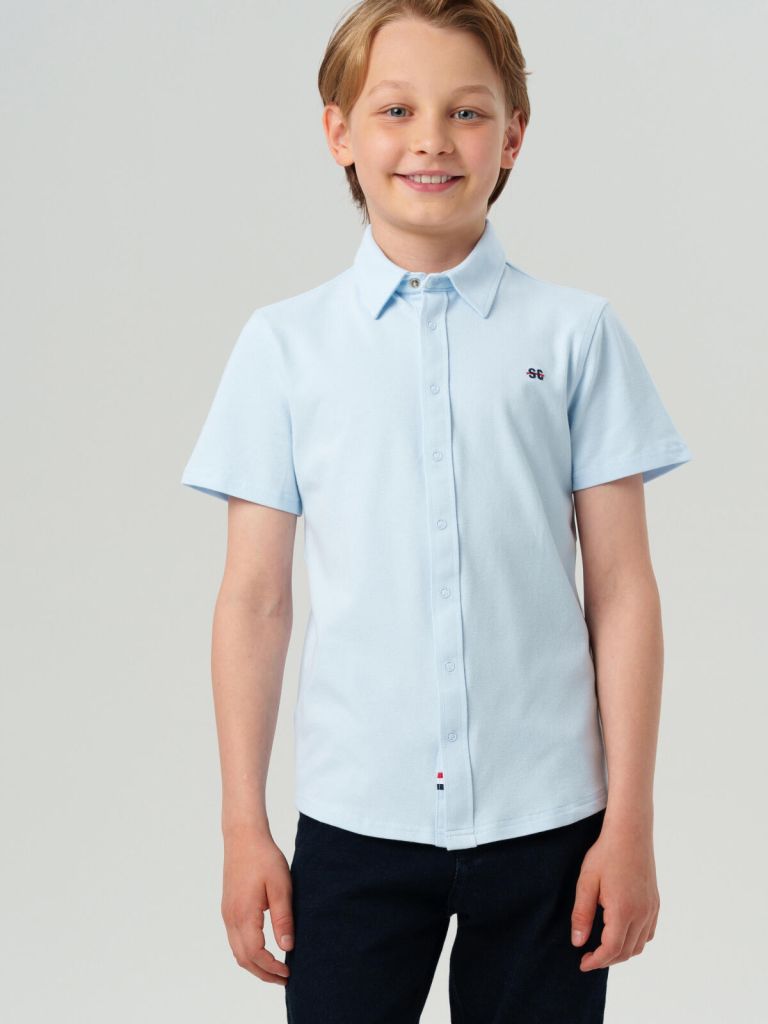Эта голубая рубашка для мальчика с коротким рукавом — основа школьного гардероба. Идеально подходит для занятий в классе, линейки, праздников и любого дня в школе, когда хочется выглядеть аккуратно и стильно. Лаконичный силуэт с классическим воротником и аккуратными кнопками делает её удобной и современной.