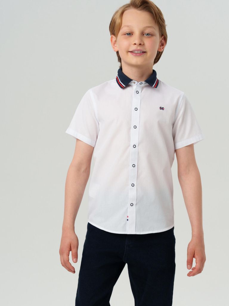 Белая рубашка с коротким рукавом для мальчика от бренда PlayToday — базовая вещь, без которой не обойтись в школьном гардеробе подростка.