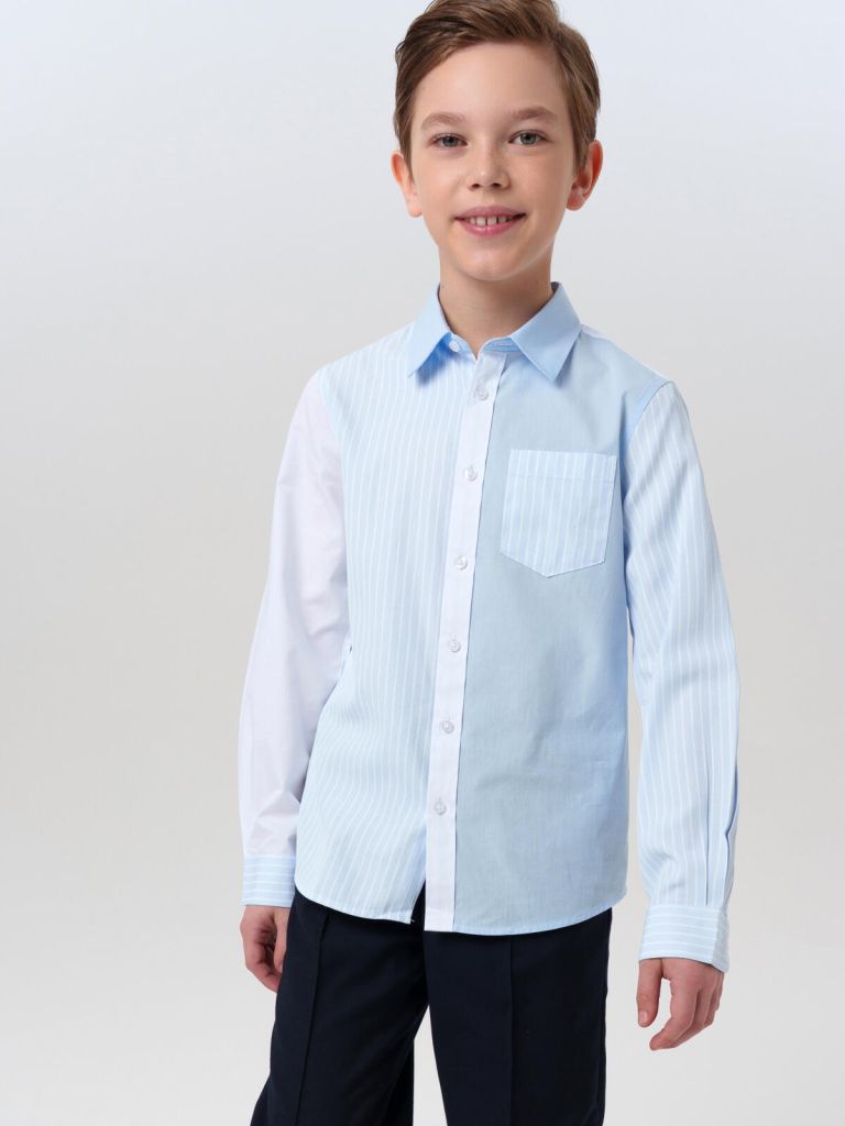 Эта школьная рубашка для мальчика с длинным рукавом станет любимой частью гардероба школьника и подростка. Модель представлена в базовых оттенках — белом и голубом — и идеально подойдёт как на торжественные линейки (1 сентября, выпускной), так и на каждый день в школу. Рубашка легко сочетается с классическими брюками, жилетами, пиджаками или кардиганами от PlayToday — создавая стильный и трендовый, но аккуратный образ, соответствующий школьному дресс-коду.