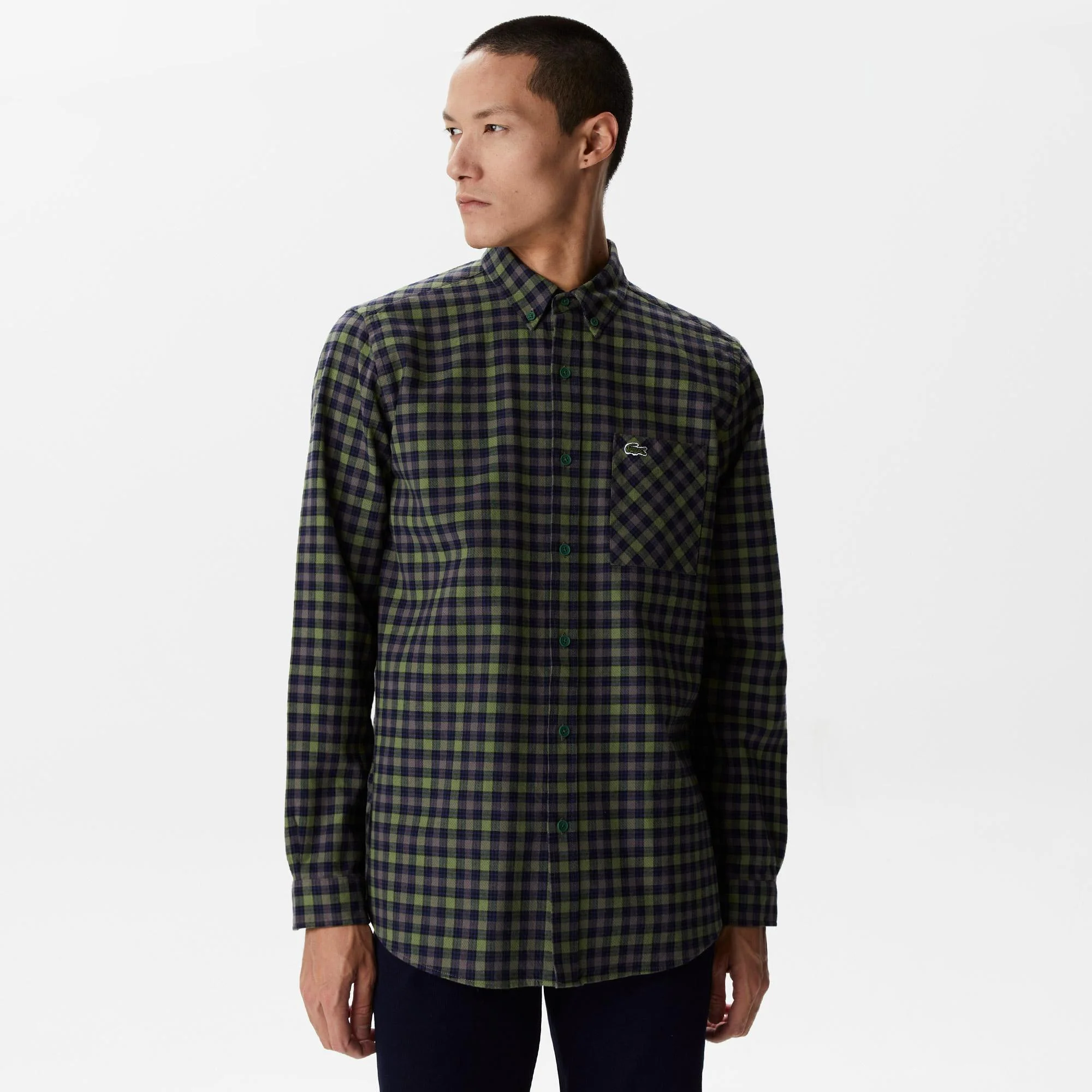Воротник button-down;\Длинные рукава;\Накладной карман на груди;\В клетку;\Логотип на груди\Материал:100% хлопок