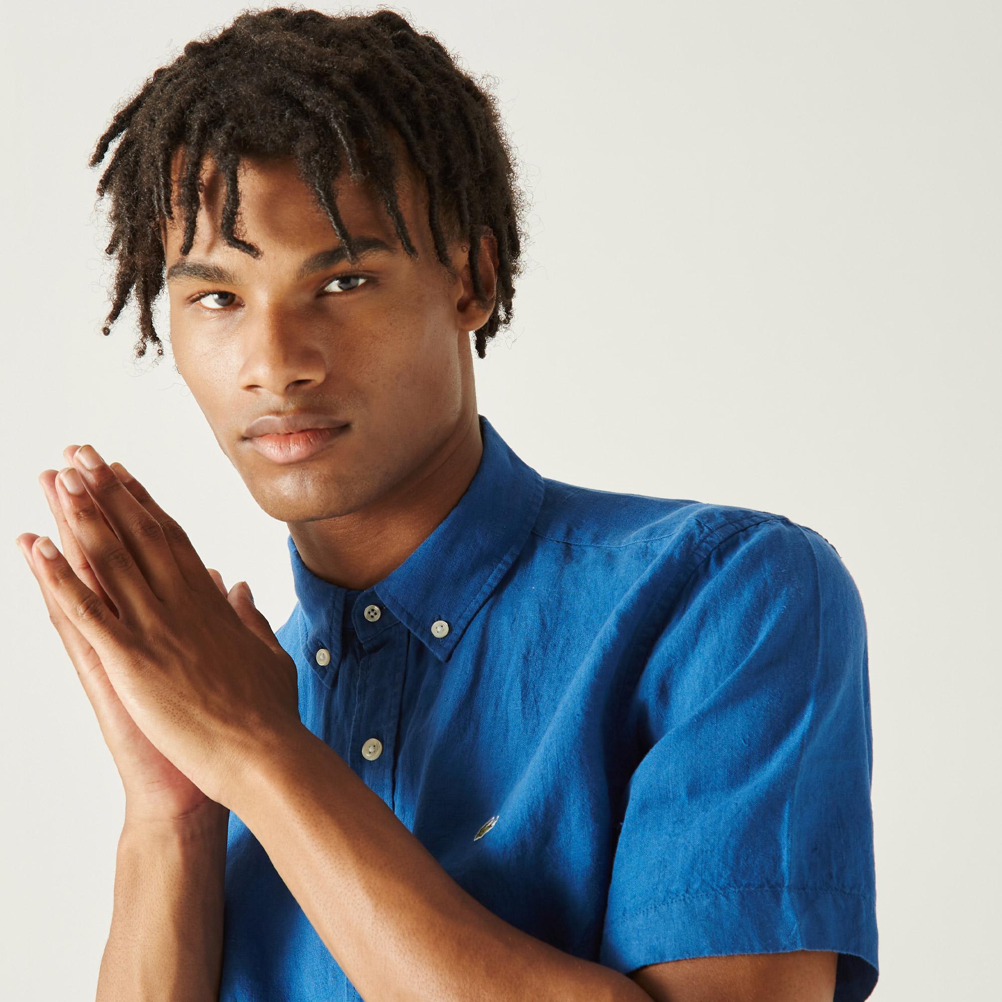 Воротник button-down;\Короткие рукава;\Логотип на груди\Материал: 100% лён\Рост модели 188 см, размер одежды 40