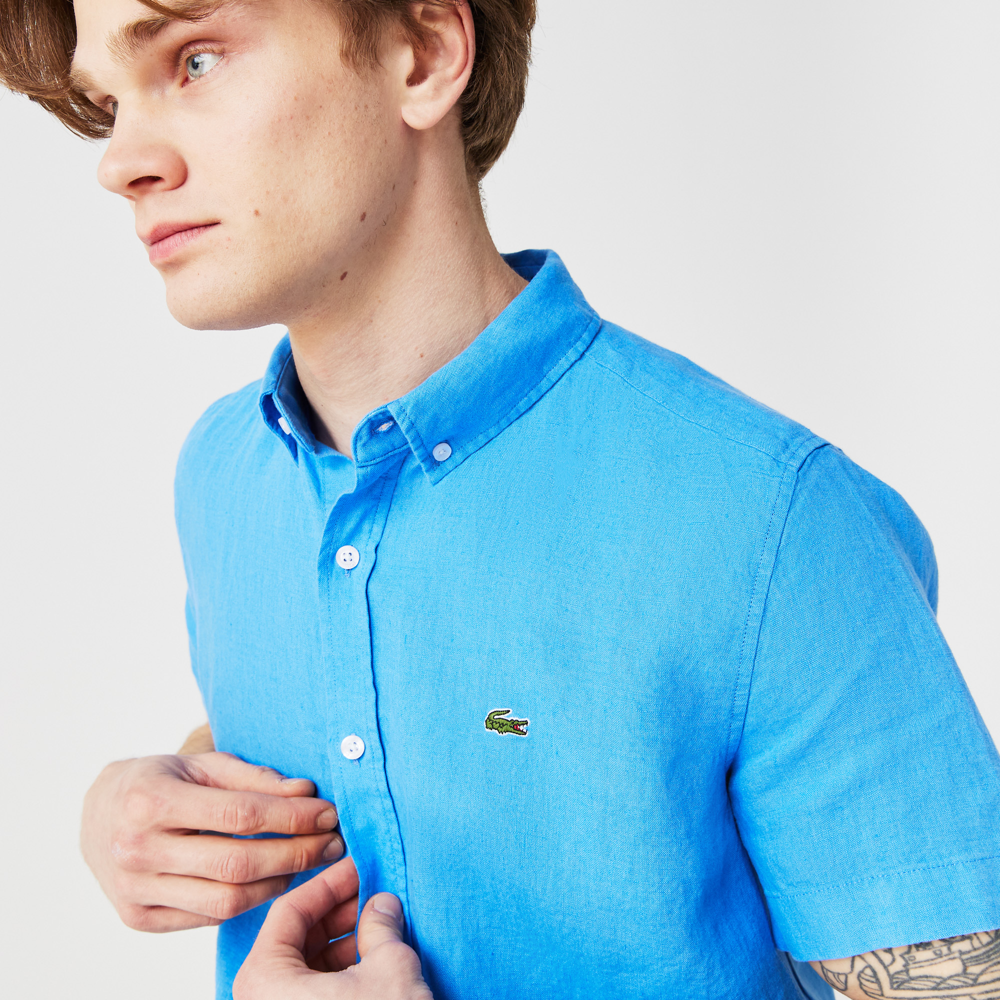Классические рукава\Логотип на груди\Материал: 100%лён\Рост модели 186 см, размер одежды 39