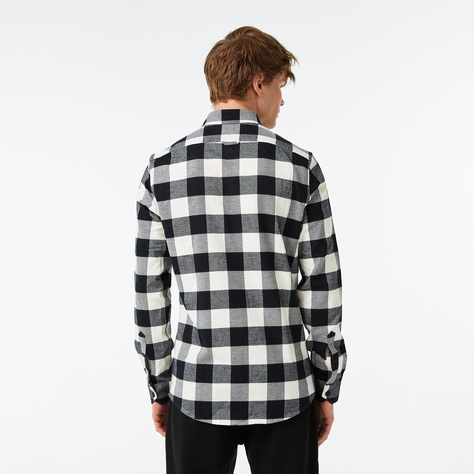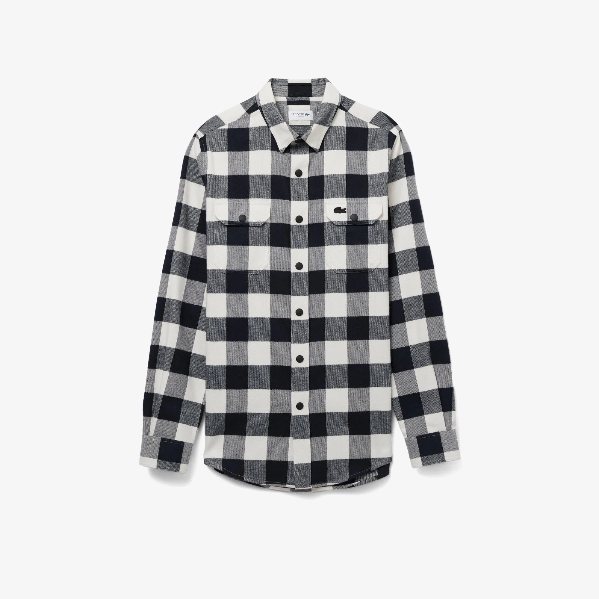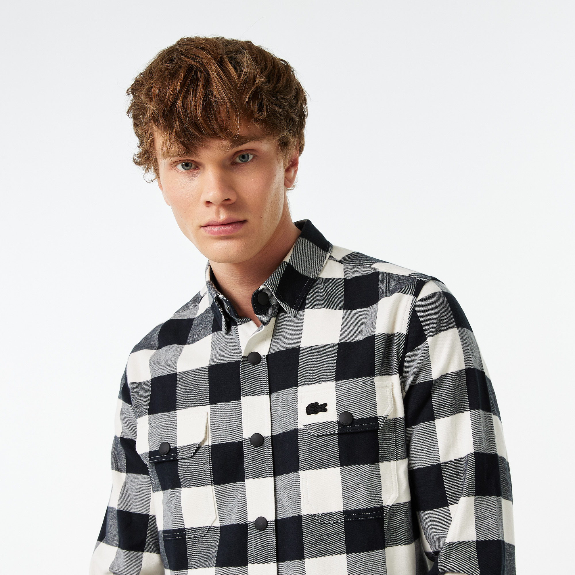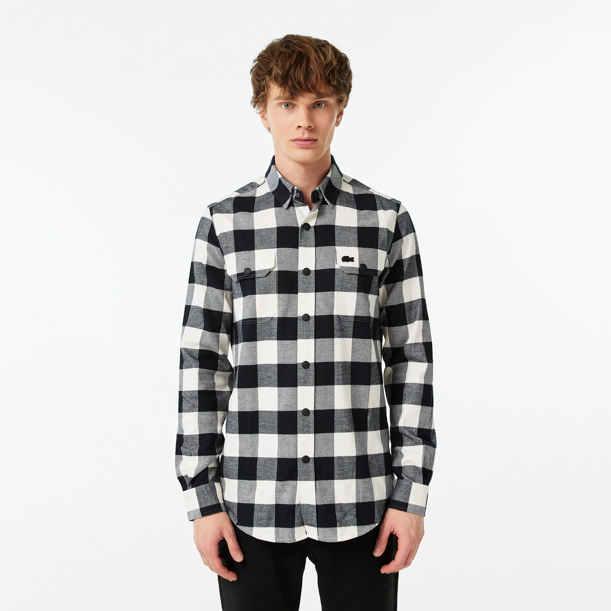 классический воротник\На кнопках\В клетку\Накладные карманы на груди\Логотип в тон изделия на груди\Материал: 100% хлопок\Рост модели 185 см, размер одежды 4-M