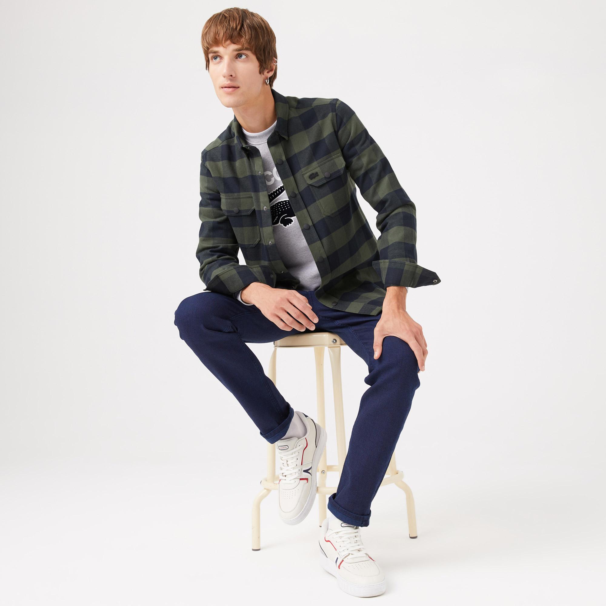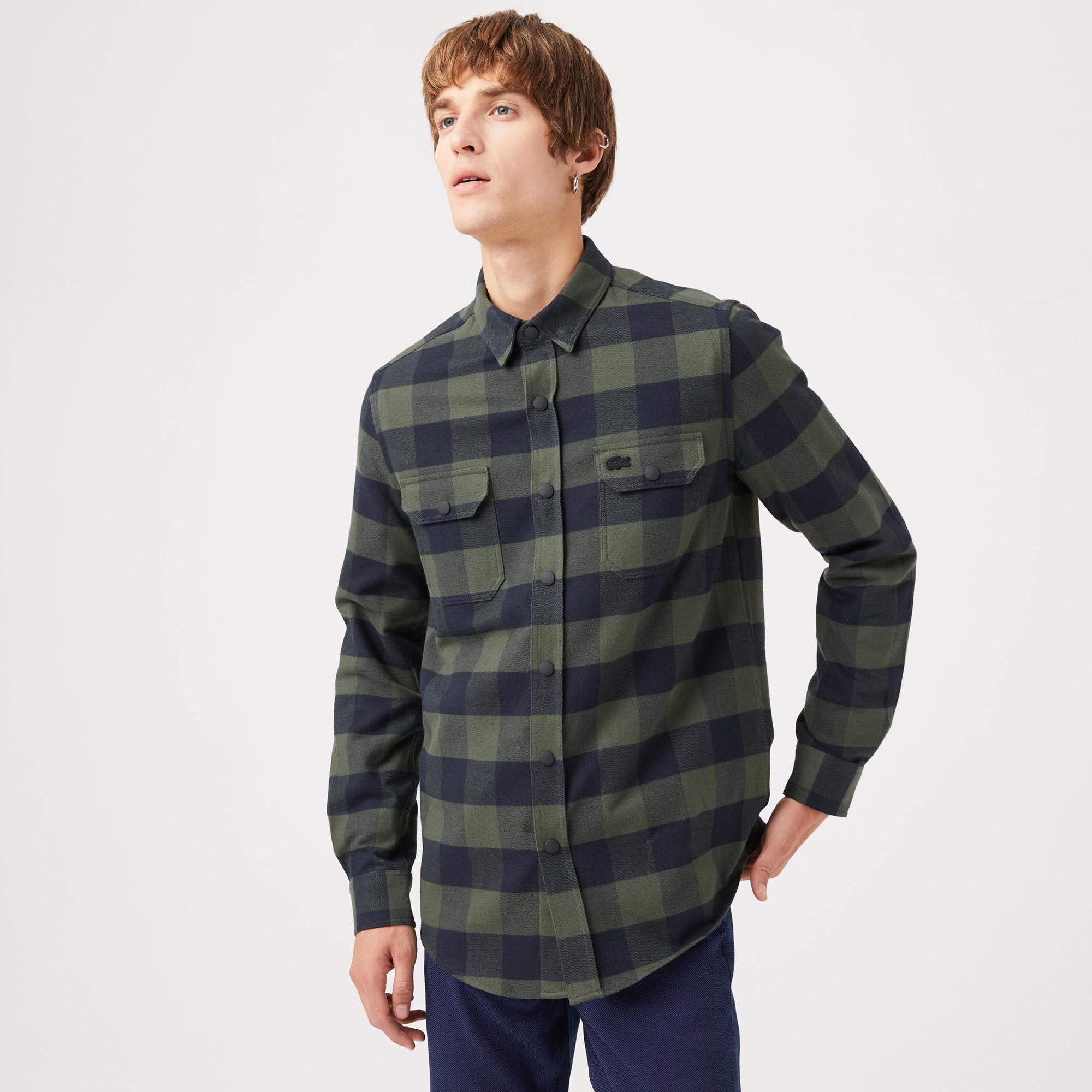 классический воротник\На кнопках\В клетку\Накладные карманы на груди\Логотип в тон изделия на груди\Материал: 100% хлопок\Рост модели 185 см, размер одежды 4-M