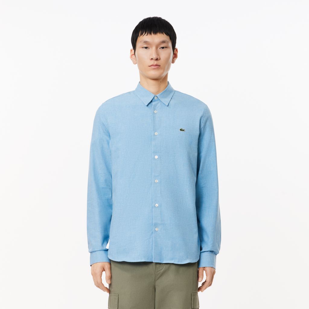 Французский воротник\Ткань из переработанного хлопка шамбре\Длинные рукава\Перламутровые пуговицы\Логотип на груди\Материал: верх-100% хлопок\Рост модели 189 см, размер одежды M