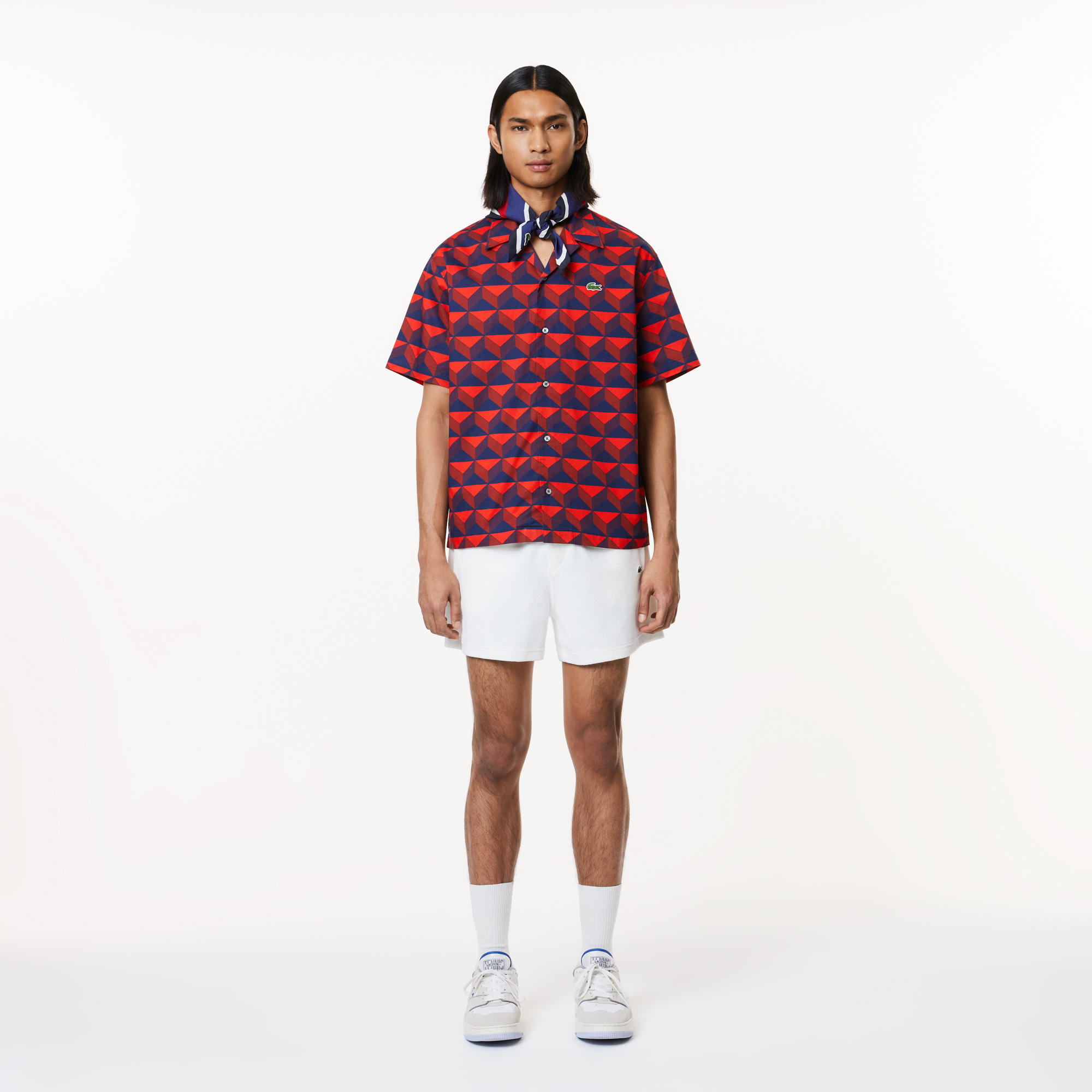Наслаждайтесь 100% крокодиловым стилем в этой архивной рубашке с ярким принтом, разработанным создателем логотипа Lacoste Робертом Джорджем. С пуговицами из настоящего перламутра, создающими шикарный и модный образ.