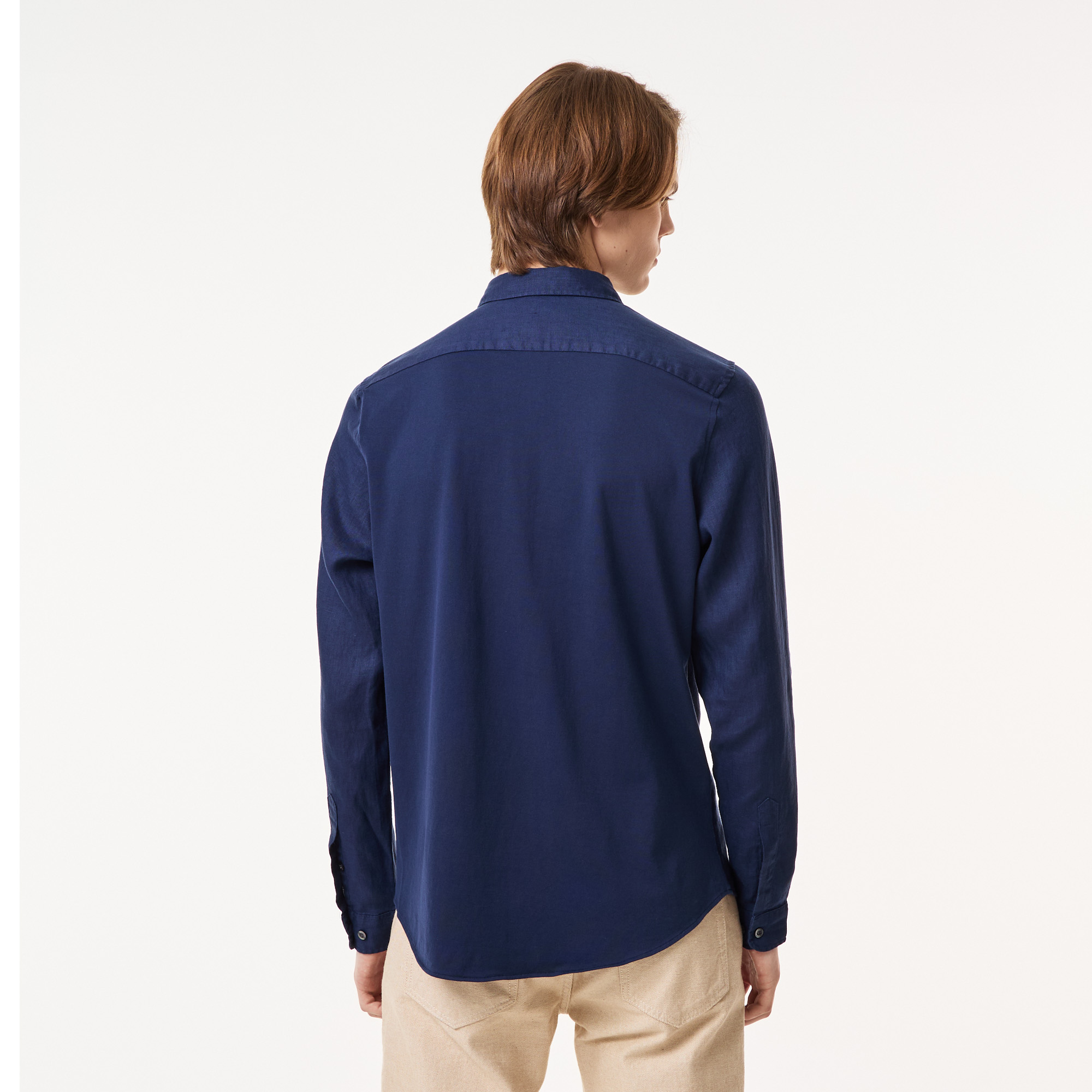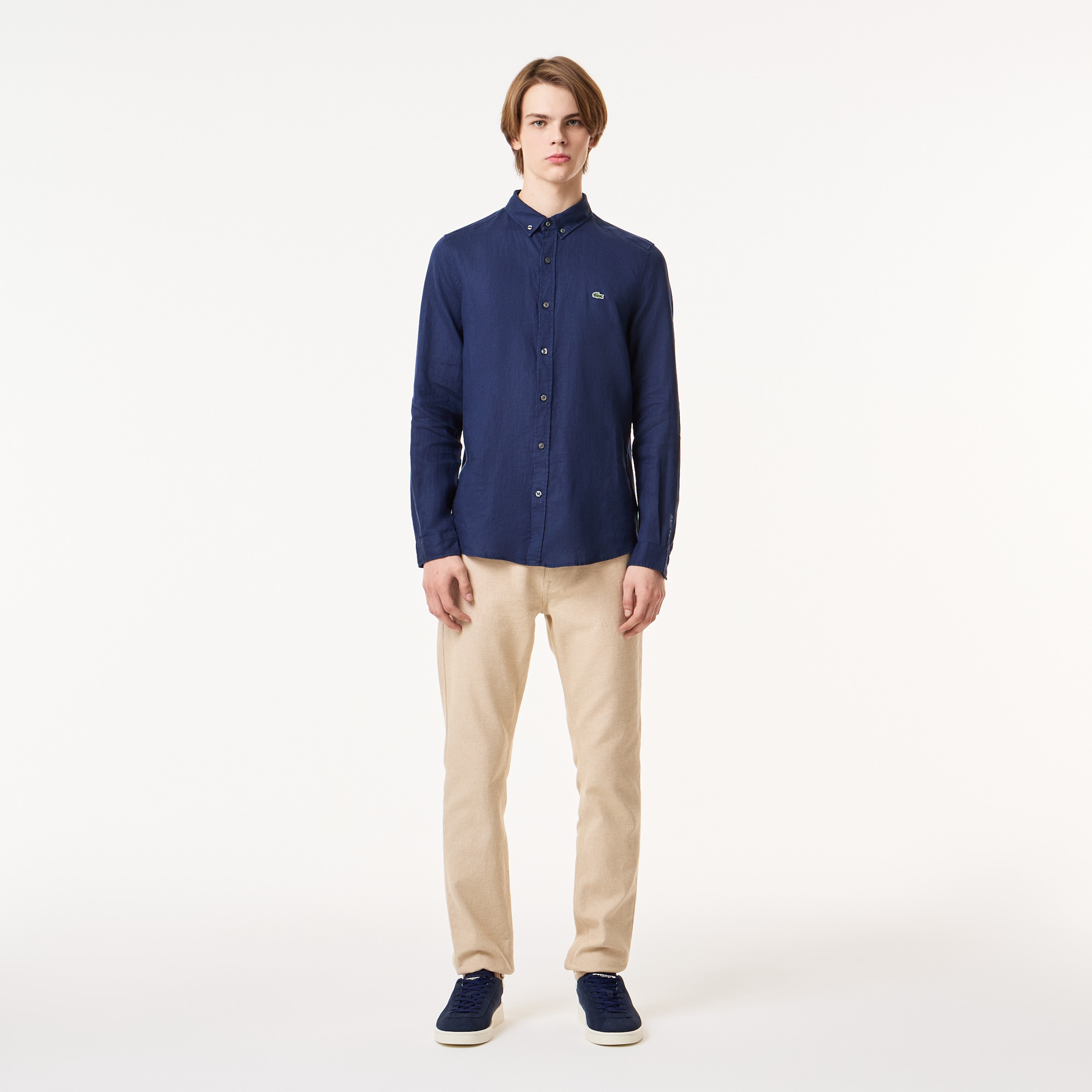 Воротник button-down\Длинные рукава\Логотип на груди\Материал: верх-100% лен\95% хлопок 5% эластан\Рост модели 187 см, размер одежды 40