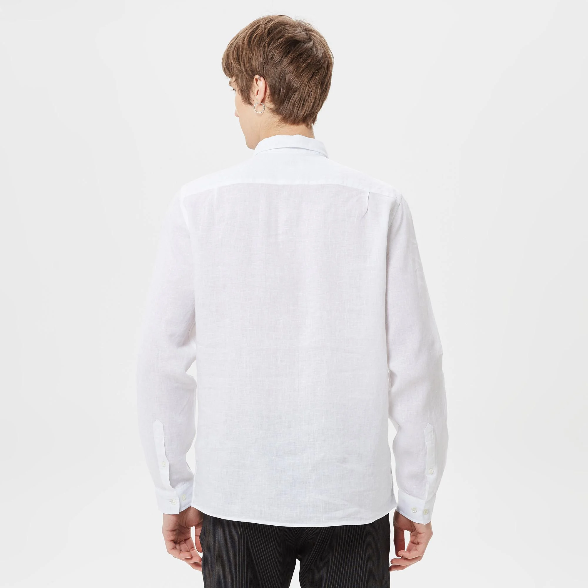Классический крой \Воротник button-down\Длинные рукава\Логотип на груди\Материал: верх-100% лен\Рост модели 185 см, размер одежды 40