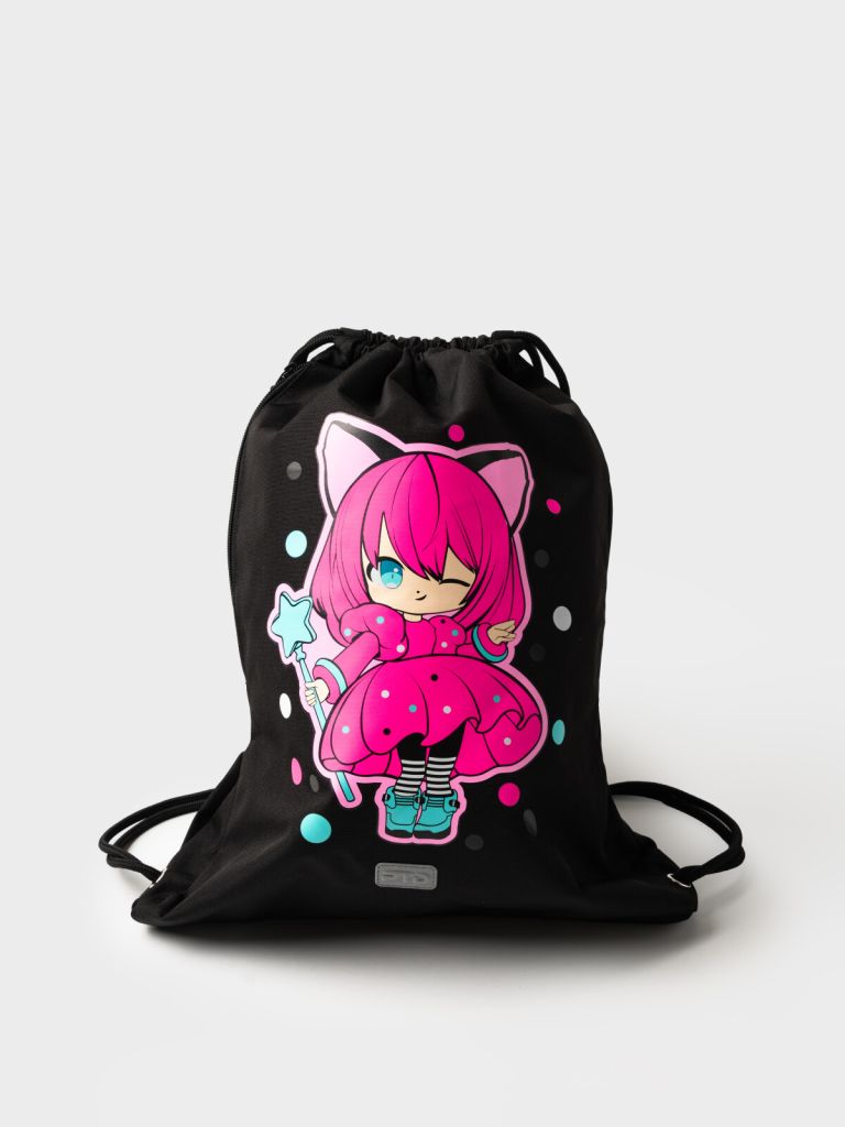 Сумка-мешок для сменной обуви из прочной водонепроницаемой ткани для девочки. Мешок для сменки для школьницы с вместительным отделением, затягивающимся двумя шнурками. Дополнительный боковой карман застегивается на молнию. Размер мешка 34*44*2 см. Это отличный вариант для школы и детского садика. В него можно складывать не только сменную обувь, но и спортивную одежду для физкультуры и секций, брать в путешествия. Он легкий и компактный. К мешку для сменки можно подобрать рюкзак и пенал в едином дизайне.