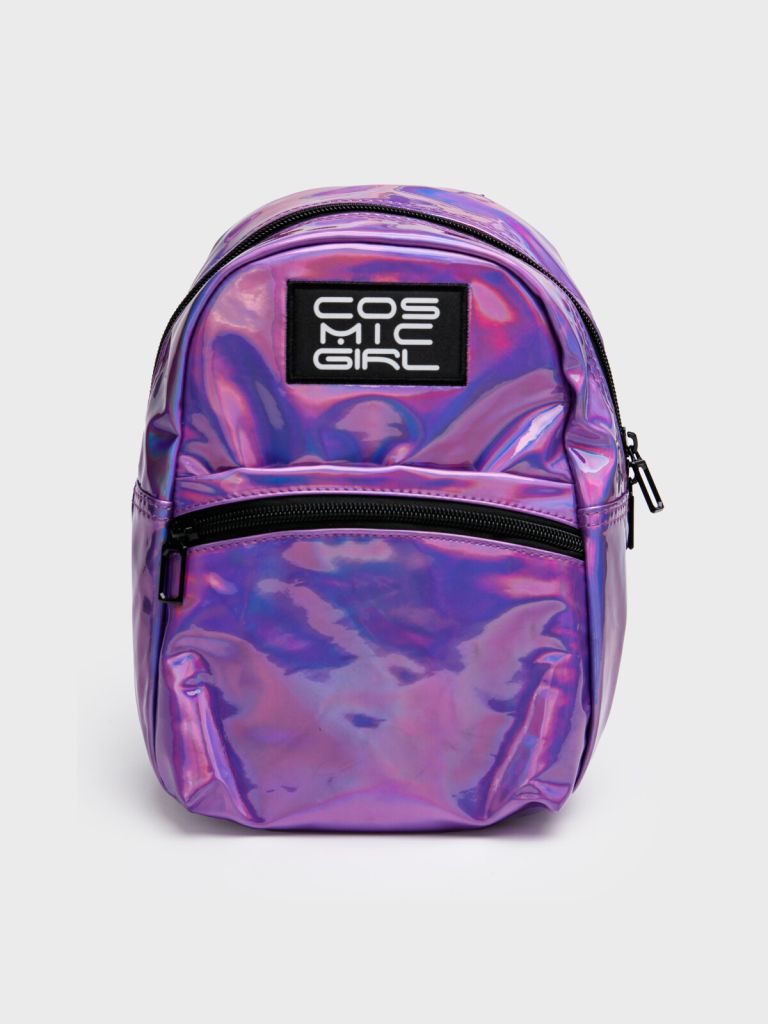Маленький рюкзак из зеркальной искусственной кожи для девочки подростка. Регулируемые лямки. Основной отдел на молнии. Спереди есть карман на молнии. Внутри карман-сетка. Параметры: высота - 25 см, ширина -19 см, глубина - 8 см.