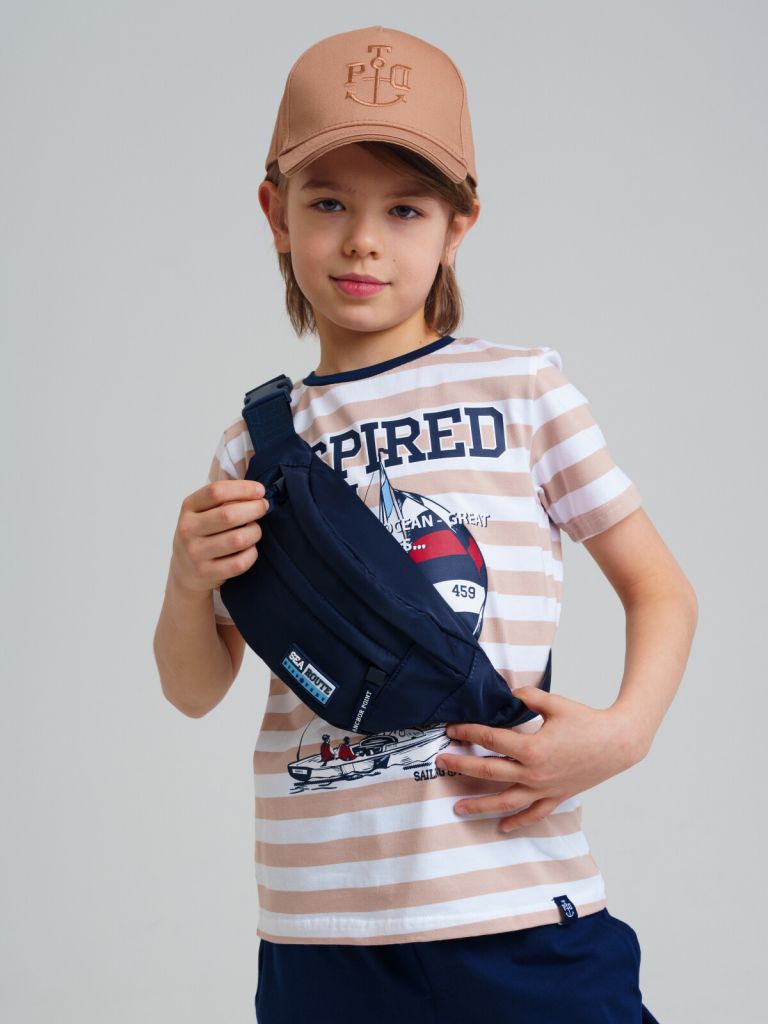 Трендовая поясная сумка для мальчика-подростка. Регулируемый брендированный ремень. Основной отсек на молнии, спереди дополнительный карман на молнии. Внутри есть карман на молнии. Параметры: высота - 14 см, ширина -30 см, глубина - 8 см.