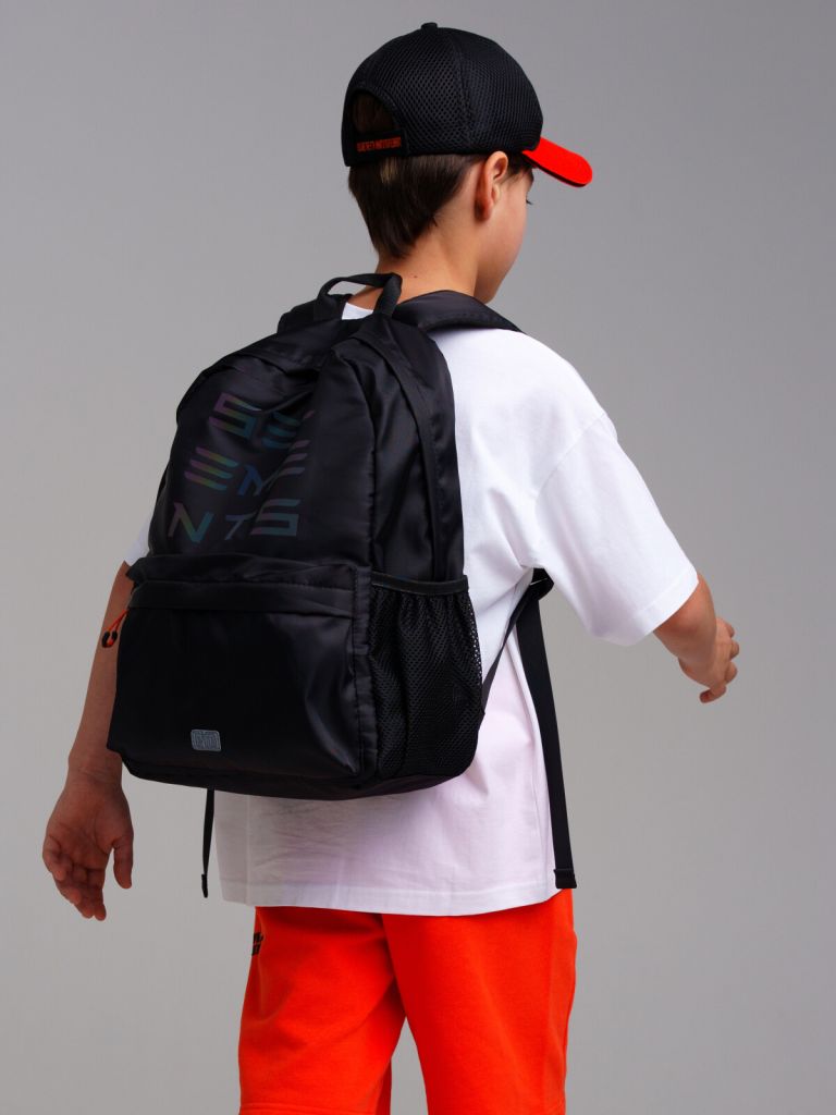 Рюкзак текстильный для мальчика. 40*30*15 см. Широкие регулируемые мягкие лямки. Основное отделение и карман на молнии. 2 боковых кармана без молнии. Внутри - отделение для ноутбука, 1 карман на молнии, 2 кармана без молнии, карабин для ключей.