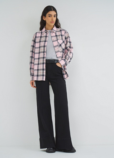 Рубашка в клетку на кнопках, Розовый
