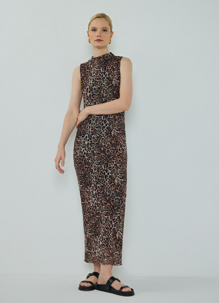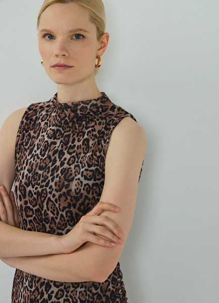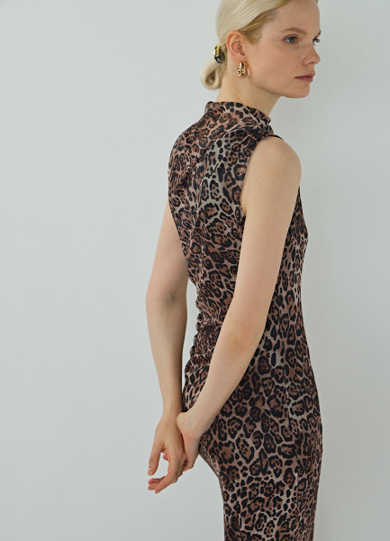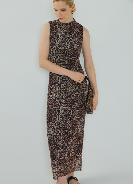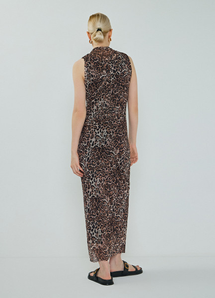 Платье из сетки с леопардовым принтом, Бежевый