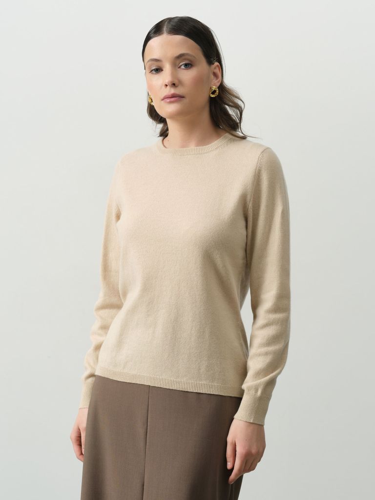 Джемпер из кашемира и шерсти бежевый – образец утонченной классики в нейтральной палитре. Мягкая комбинация натурального кашемира и шерсти создает деликатную текстуру, которая нежно обволакивает фигуру, обеспечивая комфорт в межсезонье и под слоем зимней одежды. Материал обладает естественной терморегуляцией – согревает без перегрева и позволяет коже дышать.Бежевый оттенок теплого подтона делает этот джемпер универсальным компаньоном для любых сочетаний – от строгих офисных ансамблей с юбками-карандаш до расслабленных weekend-луков с денимом. Классический крой с умеренно свободной посадкой подчеркивает силуэт, сохраняя элегантную непринужденность. Аккуратная горловина и лаконичные линии делают модель особенно практичной для многослойности.Особую ценность представляет долговечность натуральных материалов – при правильном уходе джемпер годами сохраняет форму и благородный внешний вид. Это экологичная альтернатива синтетическим аналогам, созданная для ценителей осознанного гардероба. Выбирайте кашемирово-шерстяной джемпер – базовый элемент, который преображает повседневность в стильный минимализм.