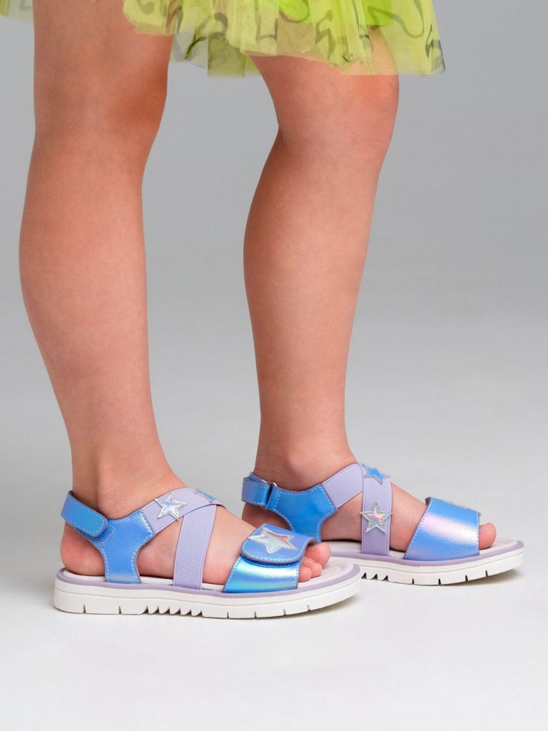 Сандалии из искусственной кожи. Подошва с противоскользящим протектором. Подкладка из натуральной кожи. Стелька из натуральной кожи с анатомическим элементом поддерживает свод стопы в правильном положении. Удобная застежка-липучка позволяет ребенку легко обуваться самостоятельно.