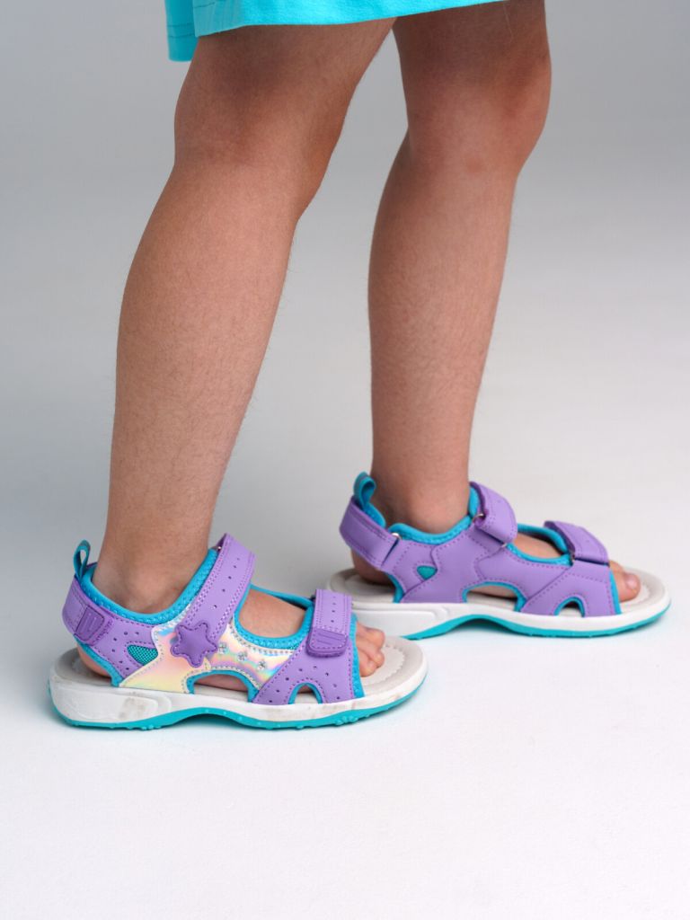 Сандалии из искусственной кожи и дышащего текстиля. Стелька из натуральной кожи с анатомическим элементом поддерживает свод стопы в правильном положении. Текстильная подкладка c высоким содержанием хлопка обладает высокой гигроскопичностью. Удобные ремни с липучками позволяют регулировать объем. Гибкая подошва из терморезины обладает повышенной прочностью.