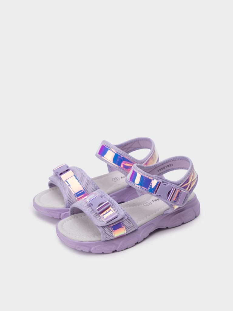 Сандалии спортивного стиля для девочки подростка. Босоножки выполнены из дышащего текстиля и зеркальной искусственной кожи. Удобные ремни с липучками позволяют регулировать обувь на любой подъем. Текстильная подкладка c высоким содержанием хлопка 80% обладает высокой гигроскопичностью. Стелька из свиной кожи с анатомическим элементом поддерживает свод стопы в правильном положении. Модель имеет гибкую и легкую подошва из ЭВА с противоскользящим протектором.