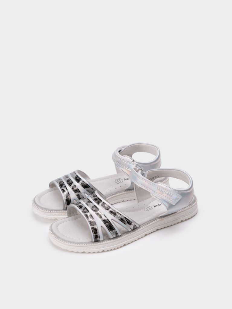 Сандалии для девочки подростка. Классические сандалии выполнены из перламутровой искусственной кожи с отделкой кожей под "змею". Подкладка и стелька выполнены из натуральной свиной кожи. Стелька имеет анатомический элемент для поддержания свода стопы в правильном положении. Подошва из ТПР очень гибкая.