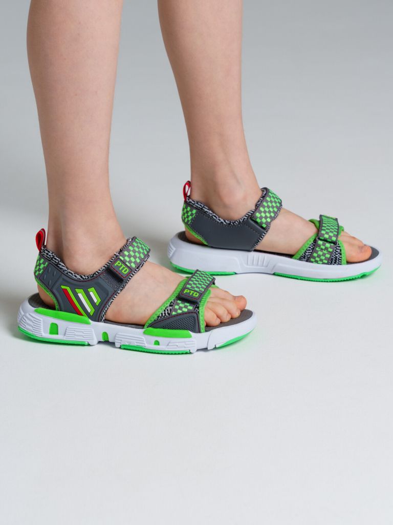 Сандалии из искусственной кожи и дышащего текстиля. Стелька из ЭВА легко моется. Текстильная подкладка c высоким содержанием хлопка обладает высокой гигроскопичностью. Удобные ремни с липучками позволяют регулировать объем. Гибкая и легкая подошва из ЭВА имеет вставки из терморезины для повышения износостойкости подошвы.