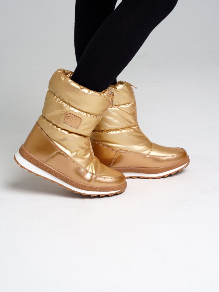 Верх из искусственной кожи и текстильного материала с водоотталкивающим покрытием. Подкладка и стелька выполнены из шерстяного меха 80%. Застежка на молнию. Глухой клапан в области застежки защищает от проникновения влаги внутрь. Формоустойчивый задник поддерживает стопу в правильном положении. Подошва имеет противоскользящий протектор. Съемная стелька позволяет хорошо просушить обувь после прогулки. Рекомендованный температурный режим от 0°С до -15°С.