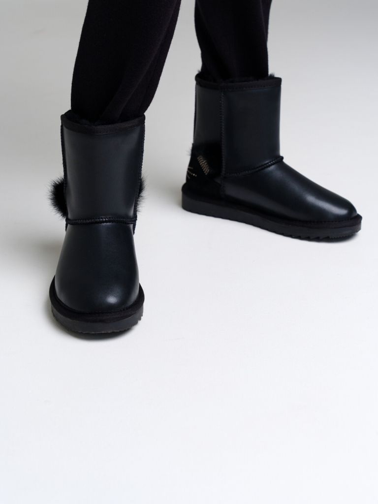 Верх выполнен из натуральной кожи с покрытием - защита от влаги. Подкладка и стелька из 100% натурального меха увеличенной плотности. Облегченная подошва с противоскользящим протектором. Удобная форма колодки. Температурный режим от 0°С до - 30°С.