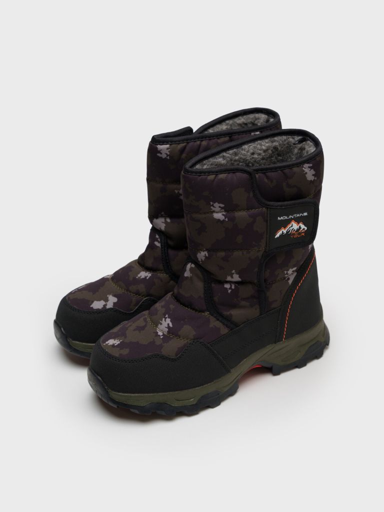 Сапоги зимние для мальчика подростка.Трехслойная конструкция верха изготовлена с использованием мембранных технологий. Подкладка и стелька выполнены из шерстяного меха 80%. Модель имеет съемную трехслойную стельку с фольгой, которая обеспечивает сохранение тепла в течение длительного времени. Усиленная защита носка и пятки специальными материалами. Формоустойчивый задник поддерживает стопу в правильном положении. Удобная застежка-липучка. Подошва имеет противоскользящий протектор. Рекомендованный температурный режим ( зависит от активности ребенка и поддевы под обувь) от 0°С до - 20°С.