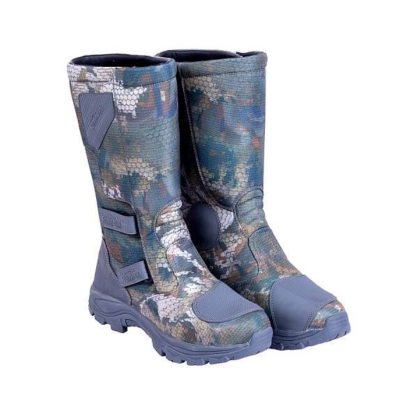 Сапоги Remington D9150 в расцветке Timber созданы для зимней охоты, рыбалки и экспедиций в условиях низких температур и высокой влажности. Верх выполнен из прочного полиэстера с дополнительным армированием из прорезиненных вставок в наиболее уязвимых зонах — носке, пятке и боковых частях. Такая конструкция отлично защищает от механических повреждений как при ходьбе по пересечённой местности, так и при езде на снегоходе. Внутренняя водонепроницаемая мембрана Waterproof блокирует проникновение влаги, сохраняя ноги сухими при ходьбе по снегу и льду. Современная подошва из EVA с резиновой накладкой сочетает в себе амортизацию и отличное сцепление, а утеплитель Thinsulate 200g удерживает тепло даже при температуре до -20 °C. Благодаря застёжкам на велкро сапоги быстро надеваются и надёжно фиксируются на ноге. Камуфлированный цвет Timber дополняет комплект охотничьей одежды и снижает визуальную заметность на фоне зимнего леса.Преимущества:Материал верха (100% полиэстер + прорезиненные вставки): прочный, устойчивый к износу и разрывам полиэстер защищён в зонах максимального давления дополнительным слоем резины, что продлевает срок службы сапог.Материал подкладки (мембрана Waterproof): водонепроницаемая ткань эффективно блокирует влагу снаружи и сохраняет ноги сухими даже при длительном контакте со снегом или талой водой.Утеплитель Thinsulate 200g: современное тонкое волокно сохраняет тепло, не добавляя лишнего объёма — оптимально для активного передвижения в мороз.Подошва (EVA с резиновой вставкой): лёгкий материал снижает утомляемость, а резиновый слой обеспечивает прочное сцепление с обледенелыми и рыхлыми поверхностями.Фиксация на велкро: быстрая регулировка и надёжная фиксация сапог по ноге предотвращают скольжение и попадание снега внутрь.Цвет Timber: маскирующий камуфляж, эффективно сливающийся с заснеженным лесом, кустарником и стволами деревьев.Температурный режим: до -20 °C: рассчитаны на зимнюю активность, включая подвижную охоту и длительное пребывание на холоде.
