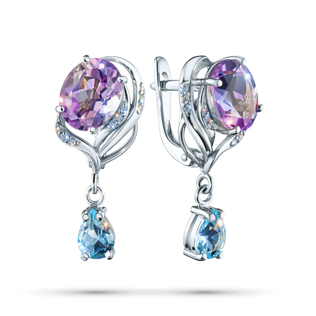 Серьги из серебра с аметистами, топазами и фианитами э0681сг01260368