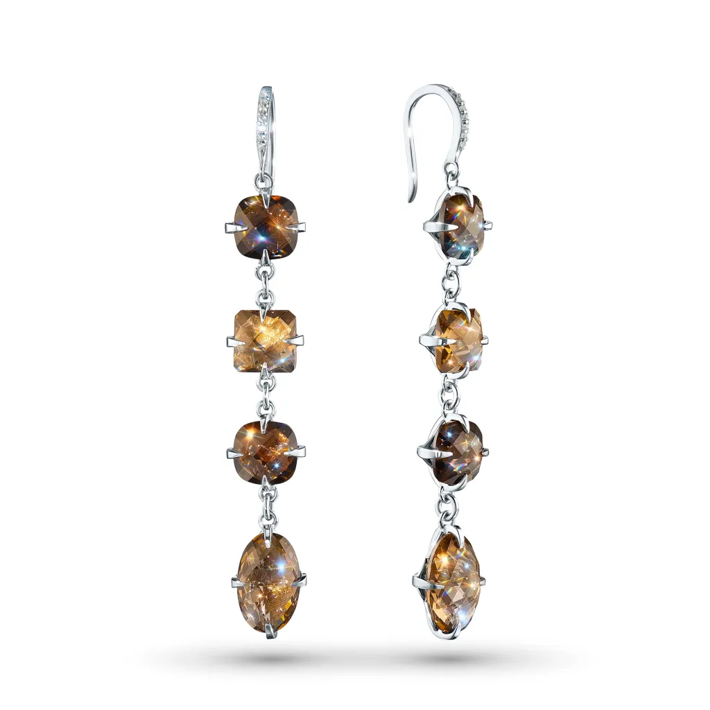 Серьги из серебра с раухтопазами и топазами э0626сг01260370
