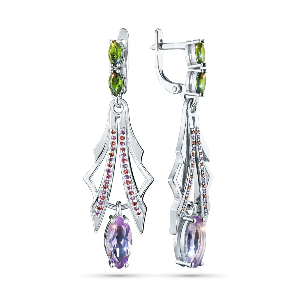 Серьги из серебра с аметистами, гранатами и хромдиопсидами э0681сг01260358