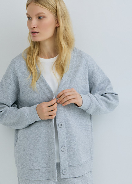 Кардиган из мягкой пряжи с шерстью, Серый