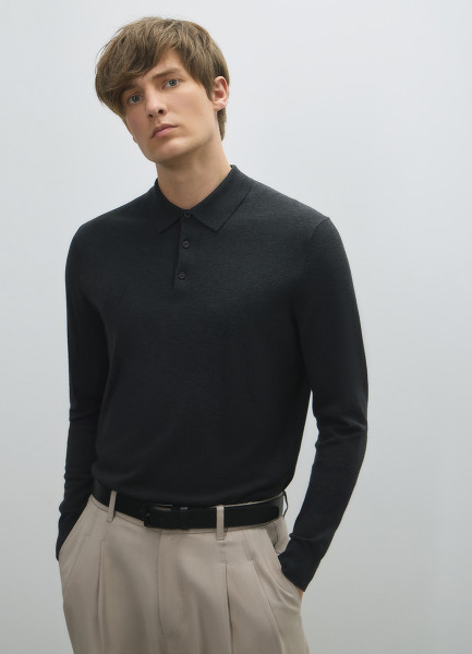 Вязаный джемпер-поло с длинным рукавом, Серый
