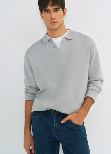 Вязаный джемпер-поло с длинным рукавом, Серый