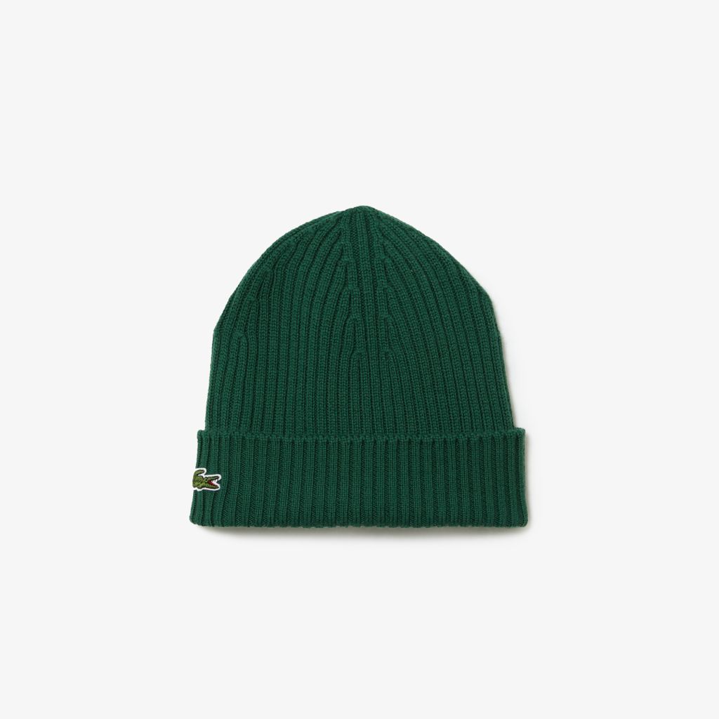 Шапочка из шерсти ребристой вязки в рубчик 2х2 \ Сбоку вышит зеленый крокодил \материал: 100% шерсть