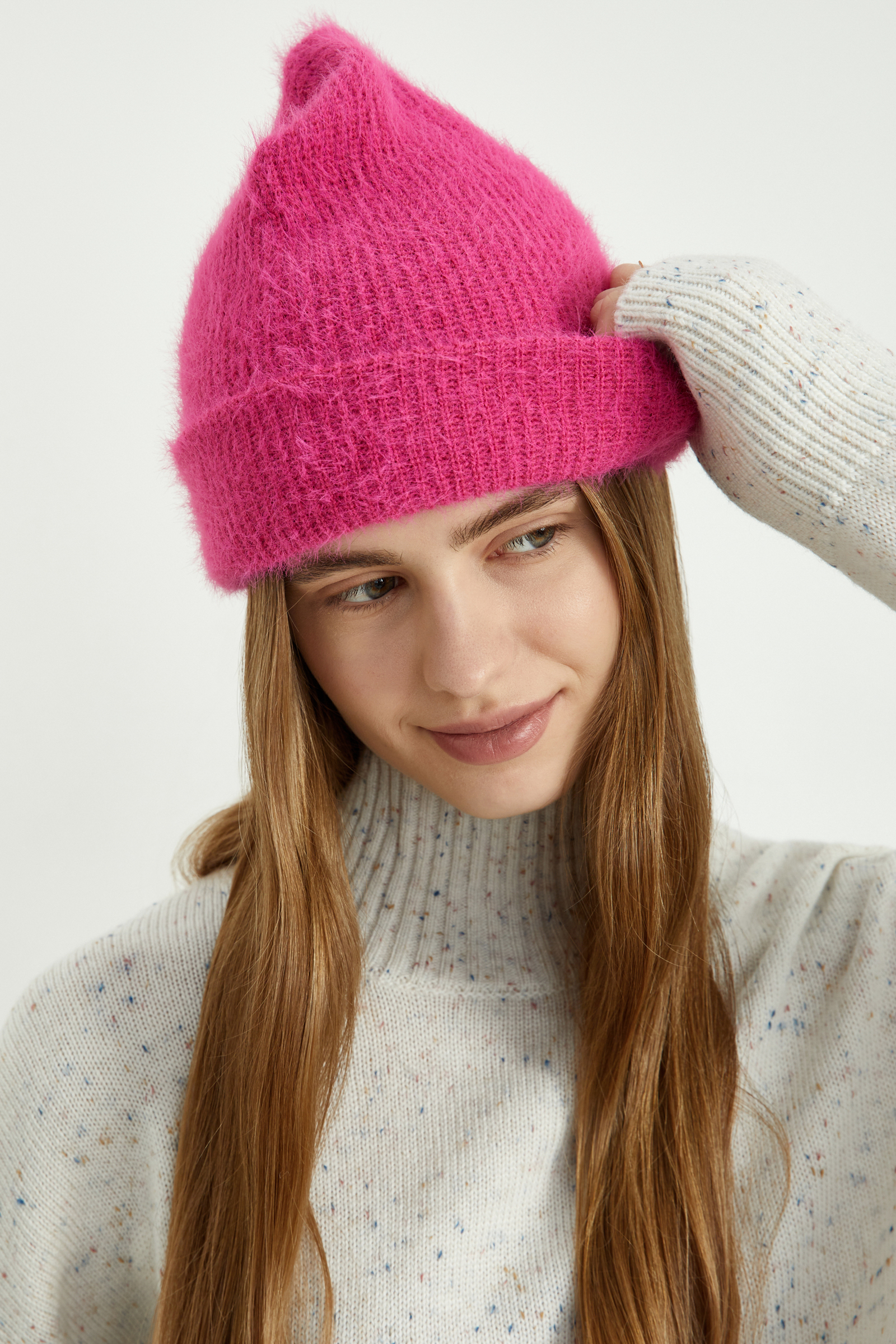 Шапка с отворотом с добавлением ангоры и шерсти