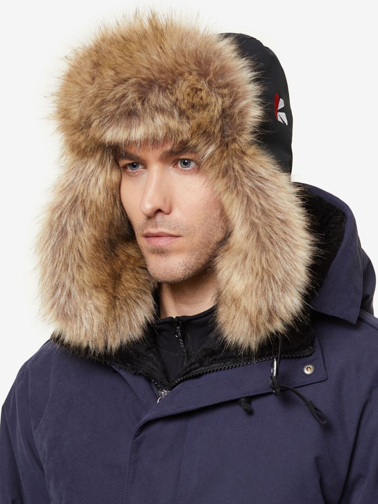 Тёплая шапка-ушанка BASK TIKSI V2 из плотного материала с синтетическим утеплителем Shelter Sport®. Отделана искусственным мехом волка.