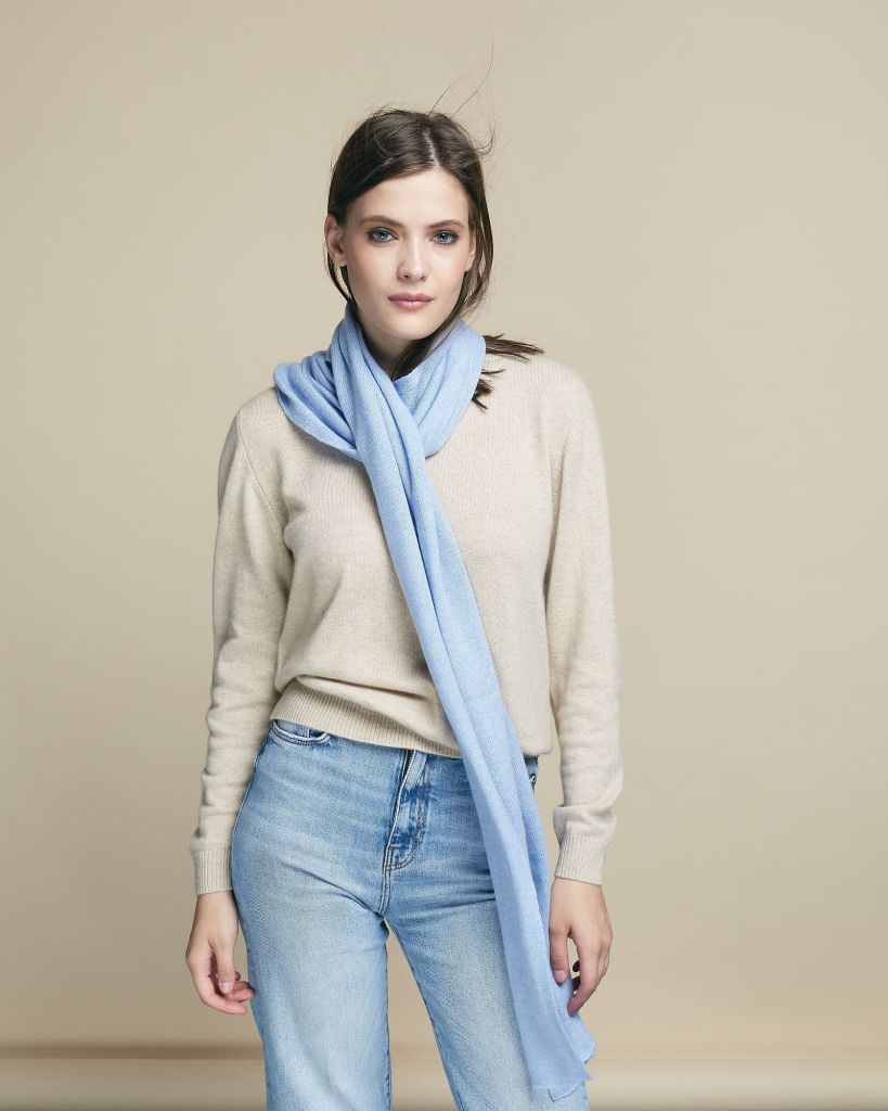 Один из самых стильных стильных шарфов от фирмы BODIO`S в небесно-голубом оттенке подарит возможность собирать не один стильный осенний образ. Прикосновение к такому шарфу мало кого оставляют равнодушными к кашемиру. Такой шарф – великолепный подарок, который долгие годы будет напоминать близкому и дорогому человеку о вашей заботе и внимании.