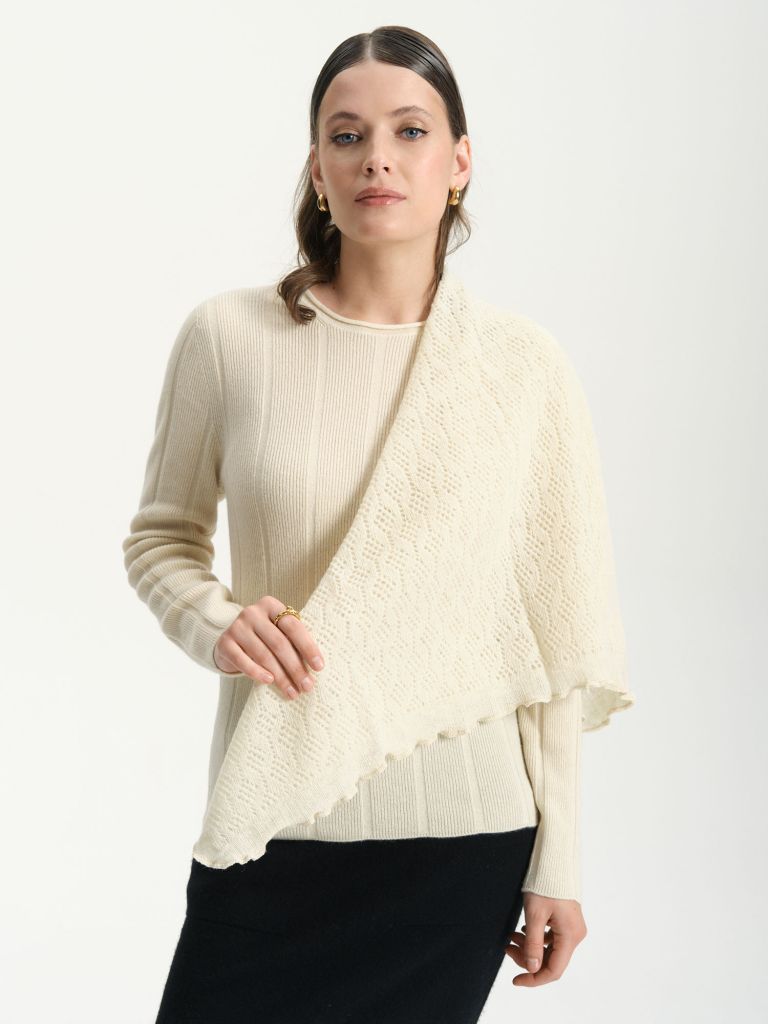 Ажурный узор добавляет изысканности и нежности, делая этот платок идеальным дополнением как к повседневным, так и к более нарядным образам. Лёгкий и воздушный, он легко драпируется, позволяя вам создавать множество стильных сочетаний.