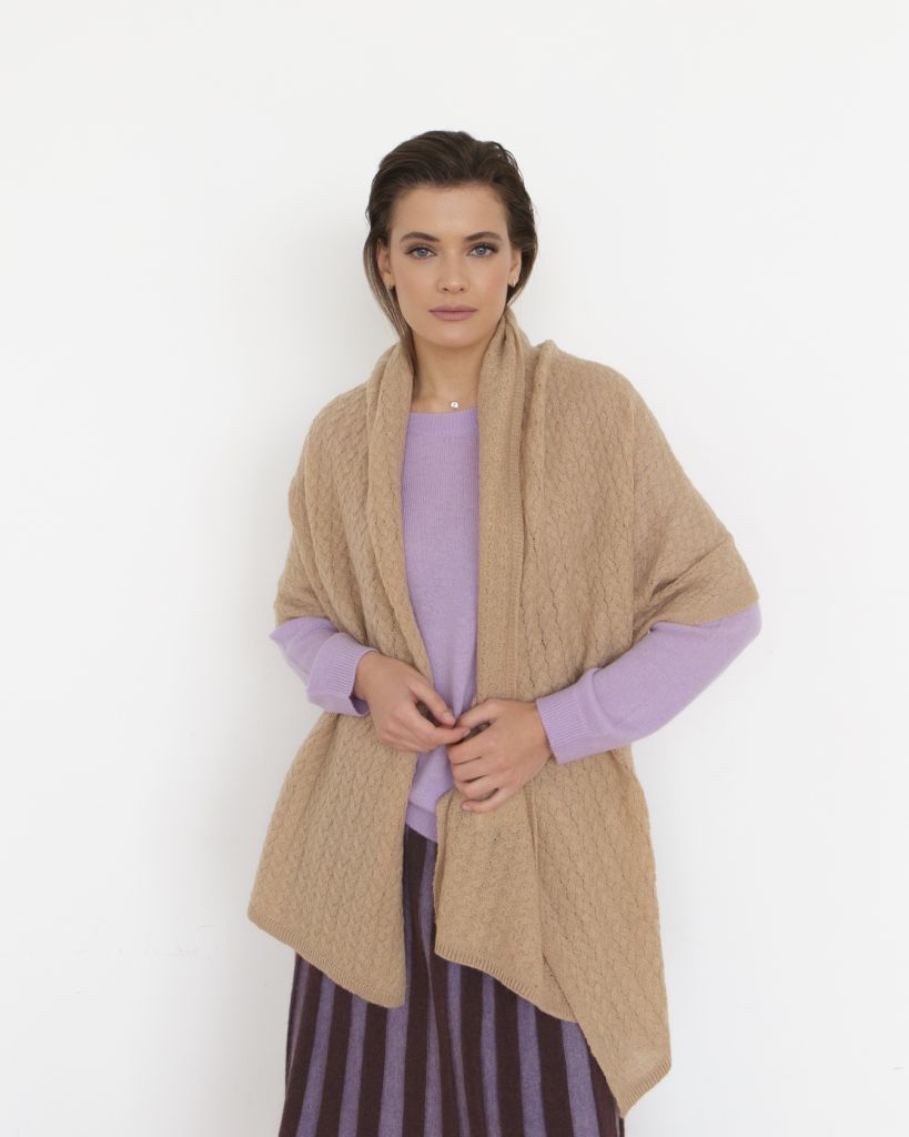 Палантин из шерсти верблюжонка-совмещение как тепла, так и нереальных тактильных ощущений. Палантин объёмен, уютен и просто будет самым стильным аксессуаром. Классический бежево-рыжий оттенок является базовым. Оттенок обеспечивает как контрастность, так и сочетается с куртками и шапками. Размер составляет 60*180.