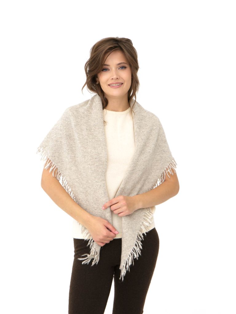 Элегантная серая косынка из натуральной шерсти в тонкую полоску добавит нотку изысканности вашему образу. Легкий и мягкий материал нежно прилегает к коже, обеспечивая комфортное ношение в течение всего дня. Косынка с бахромой по краям придает изделию особый шарм и динамичность, добавляя легкости и движения. Прекрасный выбор для создания как повседневных, так и праздничных образов, она легко сочетается с различными стилями одежды. Идеальна для прохладных вечеров и межсезонья, когда требуется легкий, но стильный аксессуар.