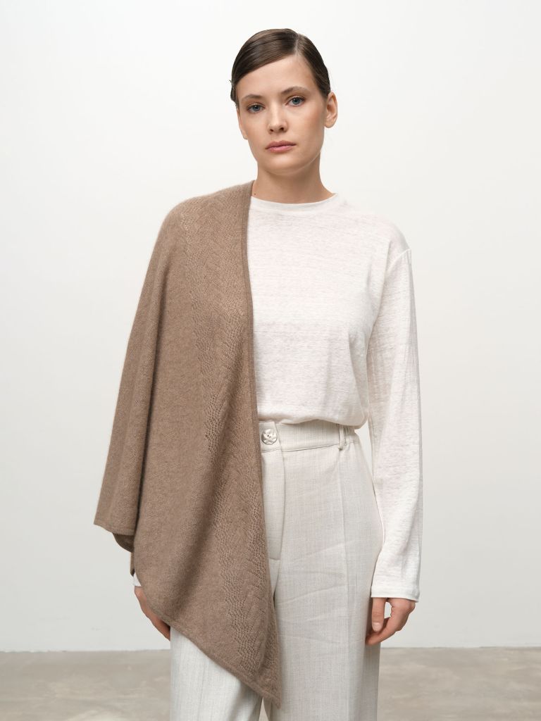 Кашемировая косынка "Капучино" – это аксессуар, который говорит о вашем безупречном вкусе. Она станет любимой вещью в гардеробе, даря тепло и завершая образы с особой элегантностью.