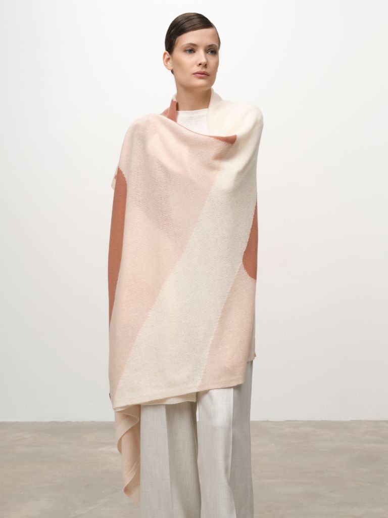 Нежный палантин из натурального кашемира в теплом молочном оттенке жасмин – идеальный аксессуар для создания элегантного образа.