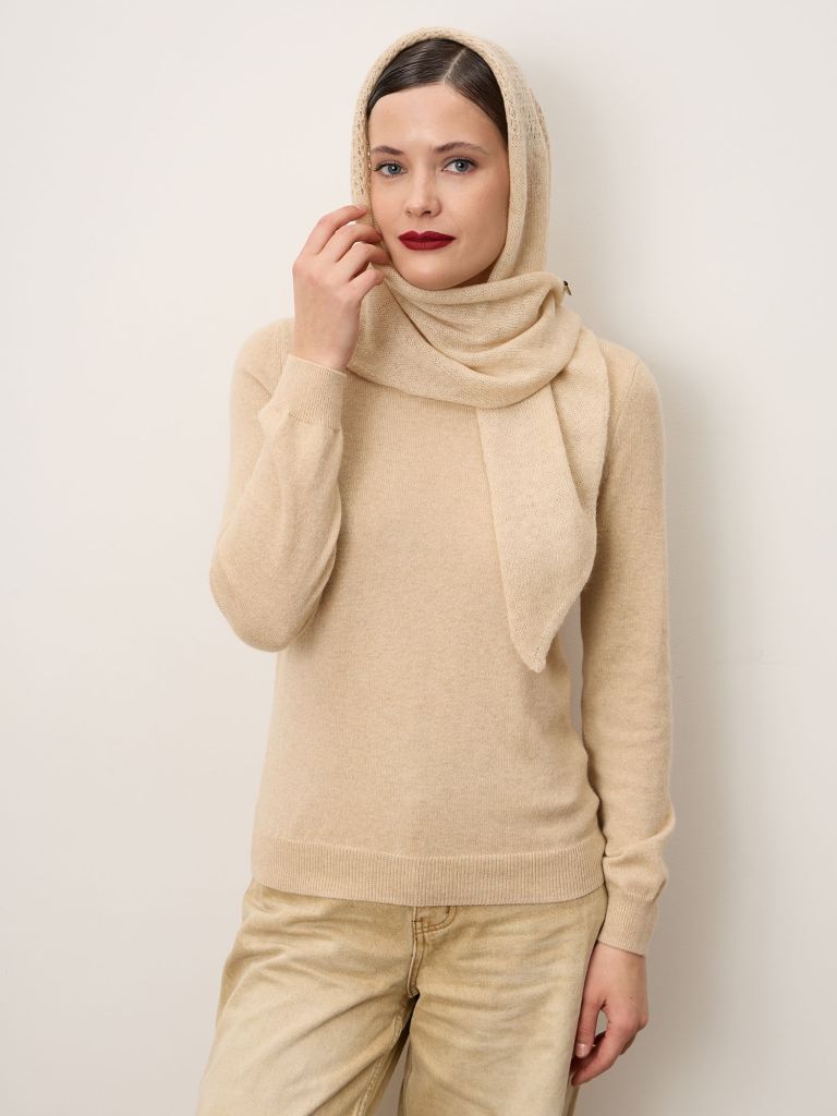 Эта кашемировая косынка — воплощение уюта и нежности. Она обволакивает голову и шею деликатным теплом, которое дарит только премиальный монгольский кашемир. Нежный бежевый оттенок создаёт мягкий, утончённый образ и подчёркивает натуральную красоту материала.