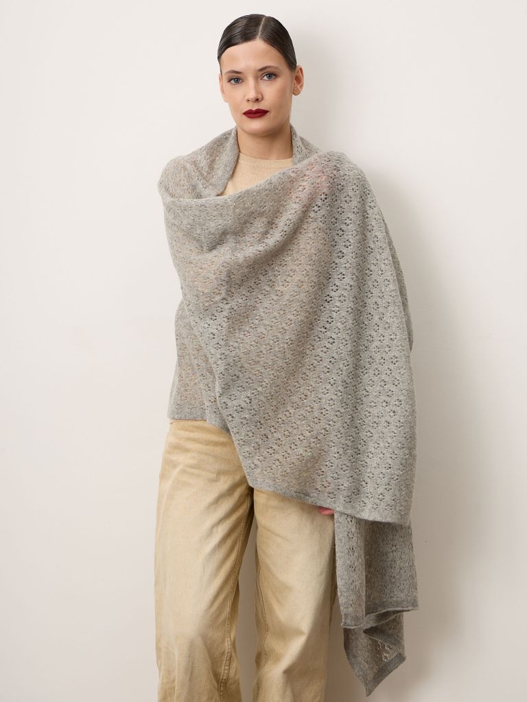 Элегантный палантин из натуральной шерсти в благородном сером оттенке — универсальный аксессуар для создания стильных и уютных образов. Лаконичный дизайн и мягкая фактура делают модель актуальной как для повседневной носки, так и для особых случаев. Серый цвет легко сочетается с базовой и яркой одеждой, гармонично дополняя гардероб в любое время года.Материал:Изготовлен из высококачественной натуральной шерсти, которая отличается мягкостью, воздухопроницаемостью и отличными согревающими свойствами. Материал комфортен к телу, хорошо сохраняет тепло и при этом остаётся лёгким.Дизайн и детали:Модель выполнена в изысканной ажурной вязке, придающей палантину лёгкость и утончённость. Края аккуратно обработаны, что подчёркивает аккуратность исполнения и долговечность изделия. Размер позволяет носить палантин как на плечах, так и в виде шарфа или накидки.Комфорт и универсальность:Палантин красиво драпируется, создавая мягкие складки и добавляя образу женственности. Идеально подходит для офиса, прогулок и вечерних выходов, легко комбинируется с пальто, жакетами и платьями.Уход:Рекомендуется бережная ручная стирка в прохладной воде с использованием средств для шерсти или профессиональная химчистка. Сушить в разложенном виде на горизонтальной поверхности, избегая растягивания и прямых источников тепла.Готовую памятку по уходу вы можете прочитать у нас в блоге.