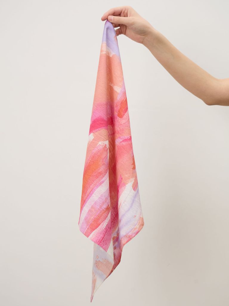 Платок легко адаптируется под разные образы. Его можно носить на шее, в волосах, на сумке или как акцент в одежде. Он не утяжеляет и остаётся комфортным в течение дня.