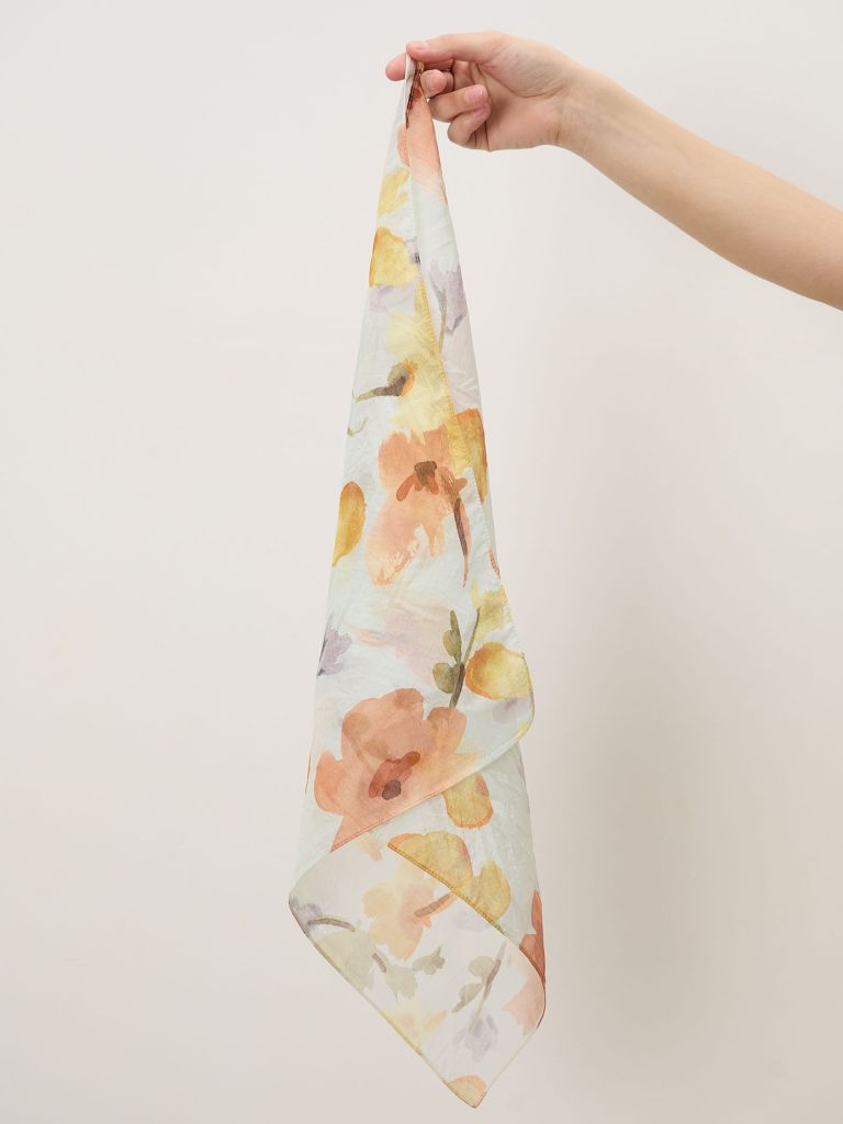 Платок легко вписывается в гардероб. Его можно носить на шее, в волосах, на сумке или использовать как небольшой акцент в образе. Он не перегружает и остаётся комфортным в течение дня.