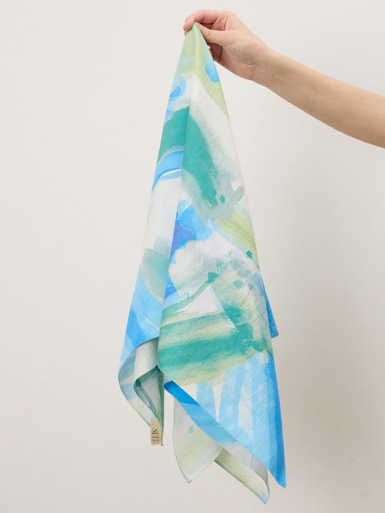 Платок легко адаптируется под разные образы. Его можно носить на шее, как накидку на плечи, в волосах или использовать как акцент на сумке. За счёт размера добавляет объём, но остаётся лёгким и комфортным.